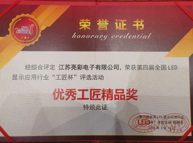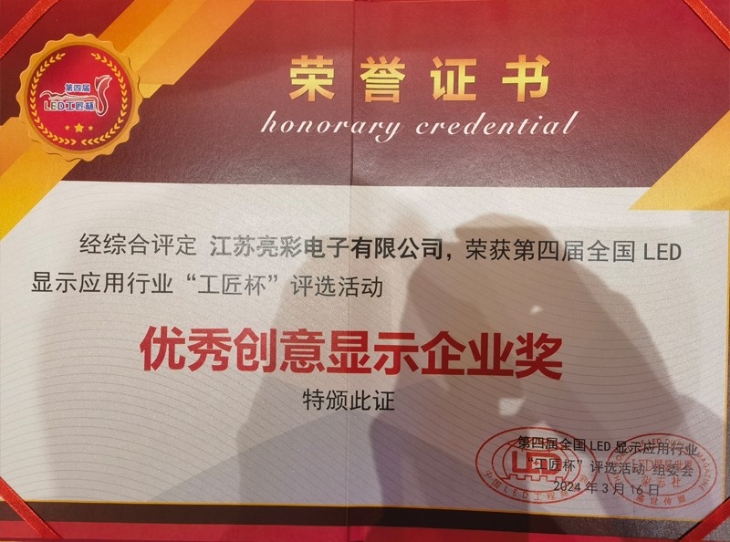 此次评选,江苏亮彩荣获“优秀创意显示企业奖”、“优秀工匠精品奖”。既是对江苏亮彩过往成绩的回顾与肯定,也是对未来工作的鼓励与鞭策。