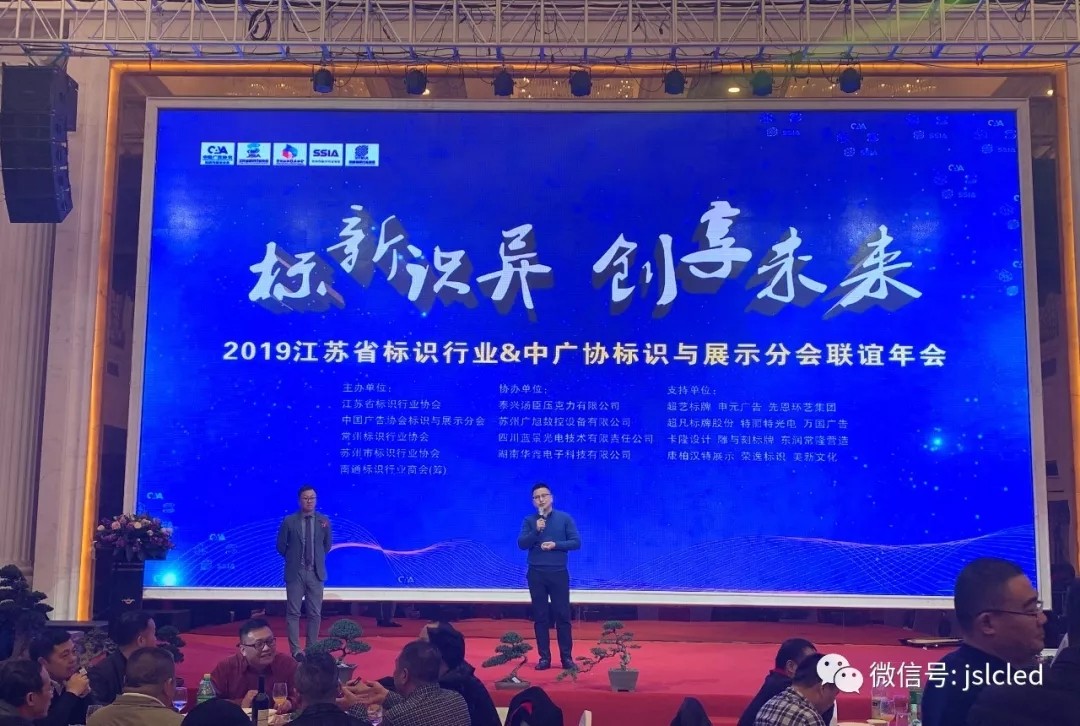 2019年11月28日,感恩节的当天,在南通普天同庆大酒店隆重举办了江苏标识行业&中广标识与展示分会联谊年会。由江苏省标识行业协会、中国广告协会标识与广告分会、苏州市标识行业协会、常州标识行业协会、南通市标识行业协会(筹)联合主办,是整个江苏省标识人的盛会。
