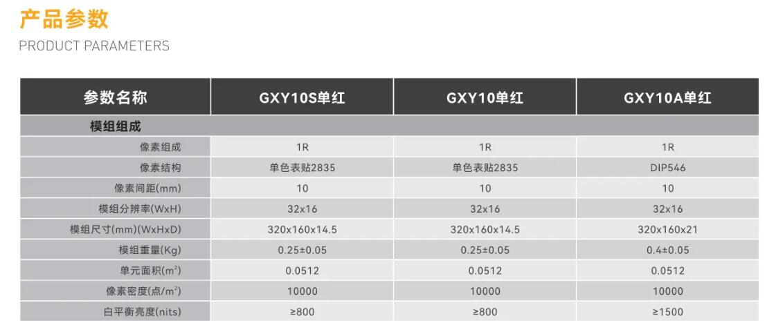GXY单红主要由红色LED晶片封装为一个像素点后,组成矩阵再固定到塑胶套件上而成。采用全彩产品线体及工艺生产,套件采用一体化成型,具有轻薄,平整度好等特点。可使用常规的单双色同步和异步驱动卡驱动,显示文字和图像。与恒压驱动的方案比较,本产品显示亮度更稳定,文字、图像更清晰。适用市面主流控制系统,连接到LED显示屏控制系统即可显示视频、图像和文字信息。